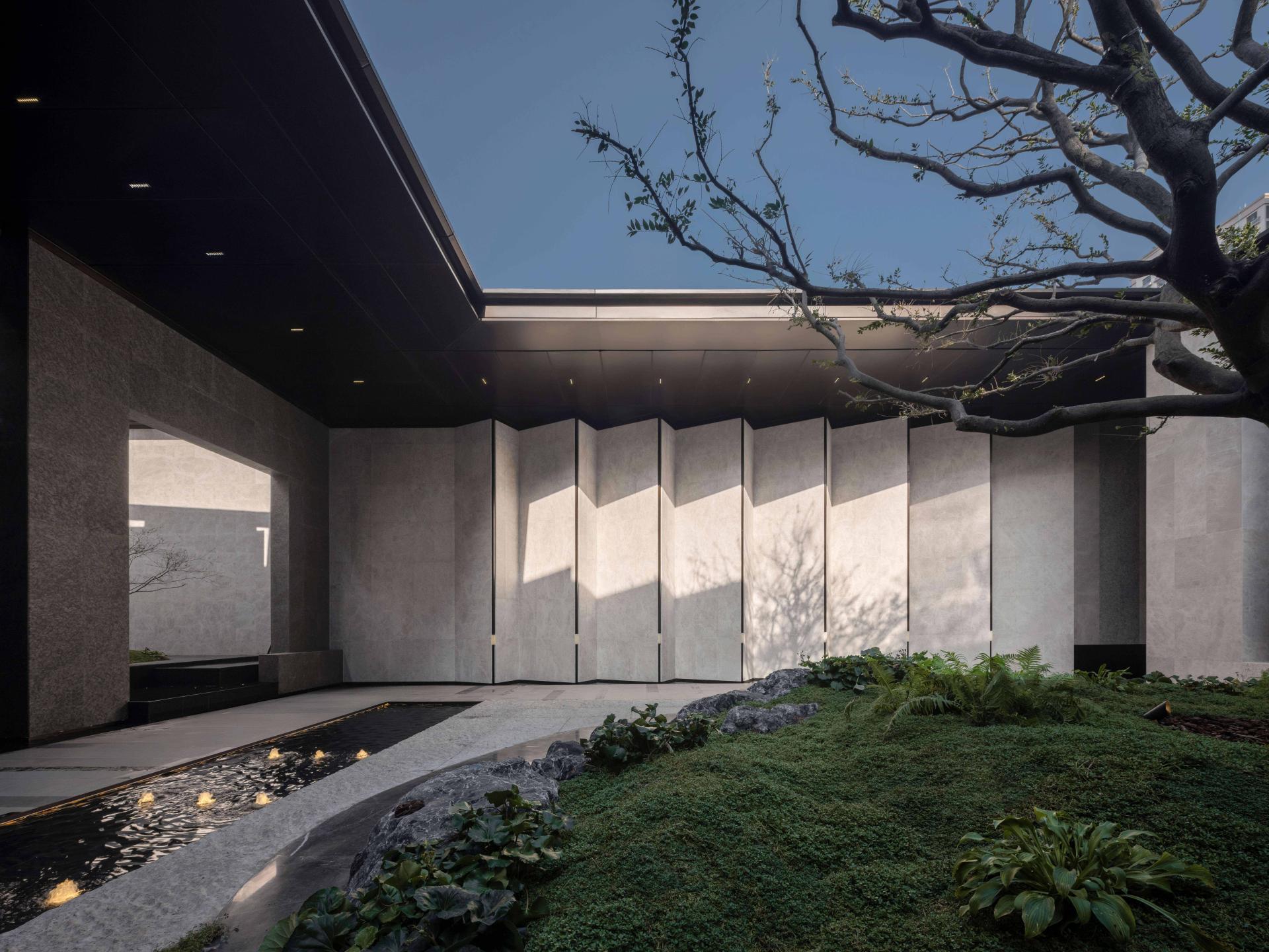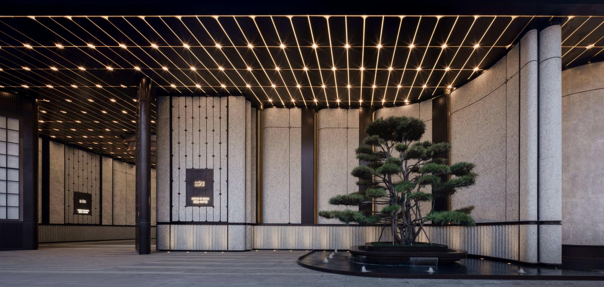 First, the “Gilded Splendor Hall” features Kuban Green luxury stone flooring, echoing the liveliness of “springs in every household.” The walls are inlaid with imperial kiln gold bricks, the same as those used in the Forbidden City, creating a dialogue across time with the ancient city’s culture. Second, the “Time-Picking Art Gallery” blends Mondrian-inspired geometric walls with custom Longshan black pottery screens, showing the fusion of tradition and modernity and reflecting the deep exploration of local culture. Third, the “Floating Light Water Courtyard” combines century-old beech trees with a cloisonné enamel wall to create an encircling covered walkway that merges nature and art, seamlessly connecting the outdoor landscape with the indoor space and echoing Jinan’s memory of “willows at every door.”