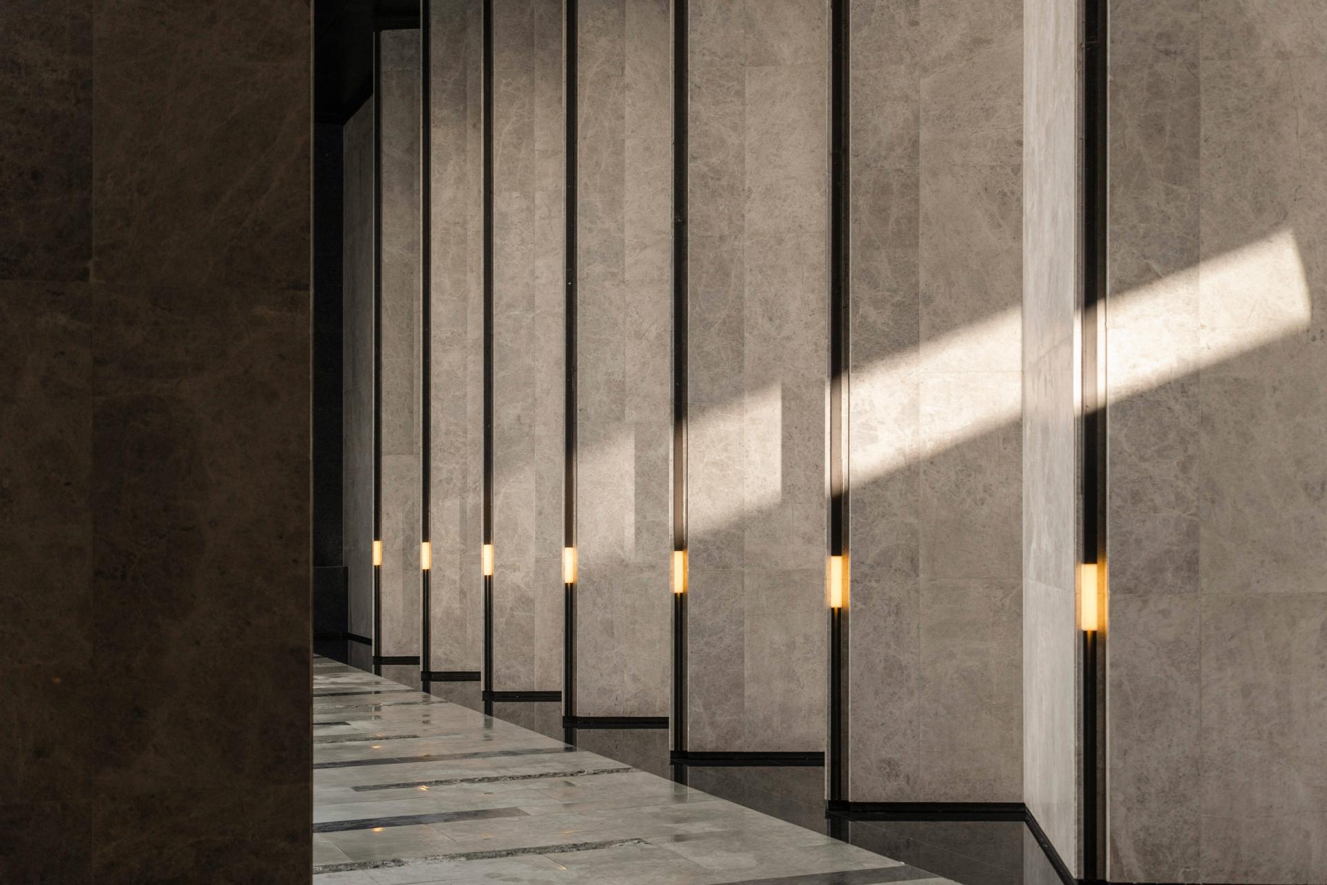 The facade design selects luxury materials from around the world while always pointing to local cultural identity. The Pandora luxury stone in the glazed water courtyard, with its flowing texture, mirrors the movement of Jinan’s springs. Rare tree species are transplanted with full crowns, recreating the ecological memory of “lotus flowers on three sides, willows on all sides.” Custom art sculptures include “Yang Song,” forged from titanium alloy stainless steel and inspired by the “Mountains and Rivers Map,” and “Dai Hui,” carved from a single piece of white marble, paying tribute to the sunrise over Mount Tai and serving as a spiritual link between the project and the regional culture.