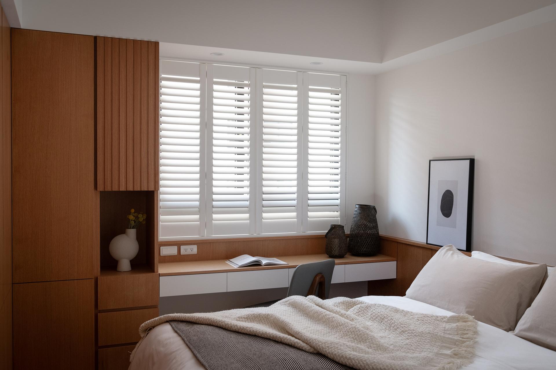 This residence follows the government-promoted “Kaohaus” design, focusing on natural light, ventilation, and greenery. To match the large balconies and plantings typical of Kaohaus, ENJOY LIFE chose light green honeycomb blinds, which not only extend the greenery effect indoors but also provide insulation against Taiwan’s tropical climate. Since the household has cats, a cat door was installed at the bottom of the kitchen’s sliding door, and the litter box was placed outside, expanding the cats’ space and reducing dust-related allergies.