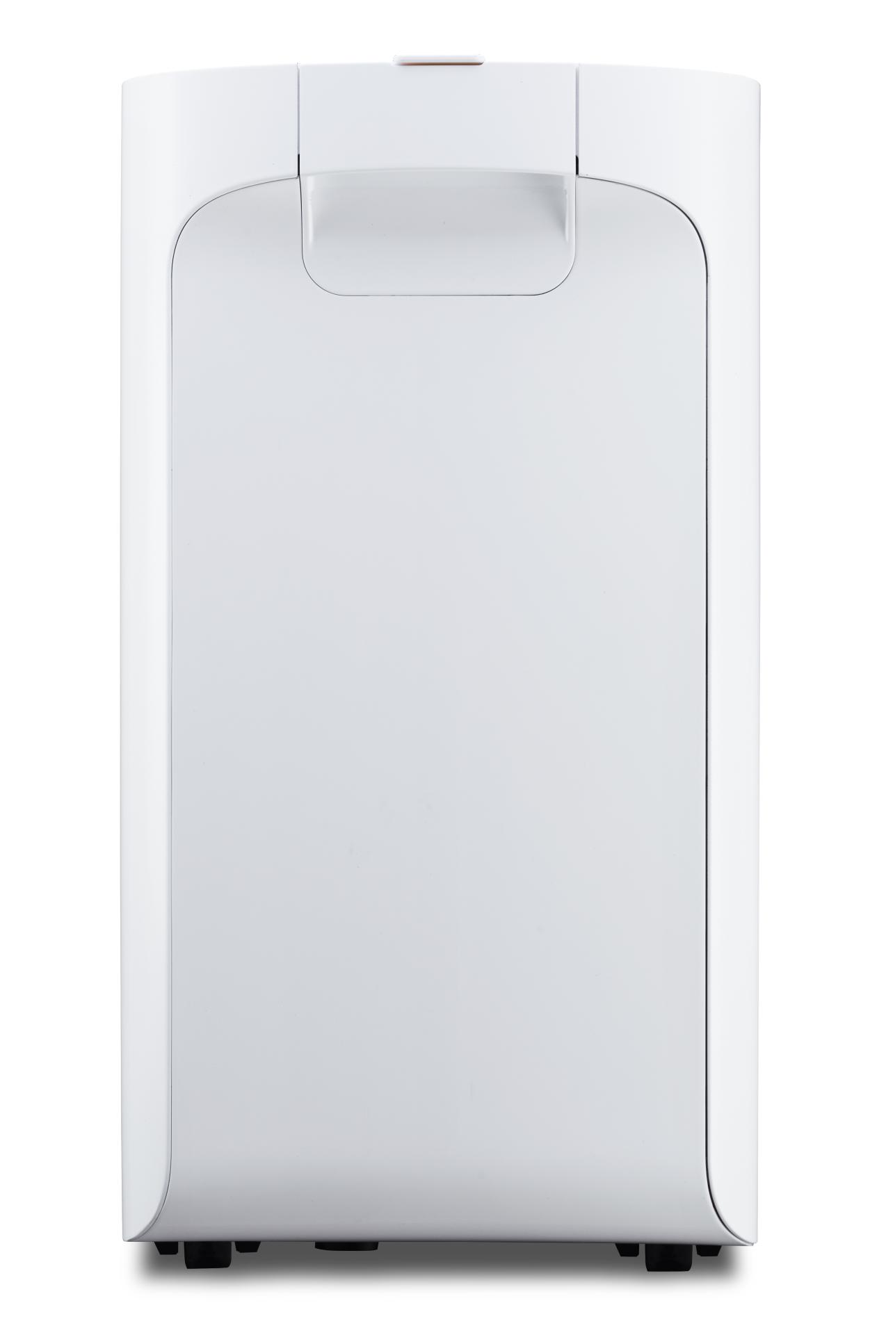 The exterior features elegantly curved lines and clean cuts, achieving a harmonious geometric proportion. The distinctive handle aligns with the overall design while ensuring easy transport. Mobility is enhanced by casters integrated into the base. The interface incorporates graphical displays for intuitive operation, further enhancing usability. This minimalist design reflects a modern, tech-savvy aesthetic that remains timeless. The balance of form and function underscores the importance of both beauty and practicality in the overall concept.