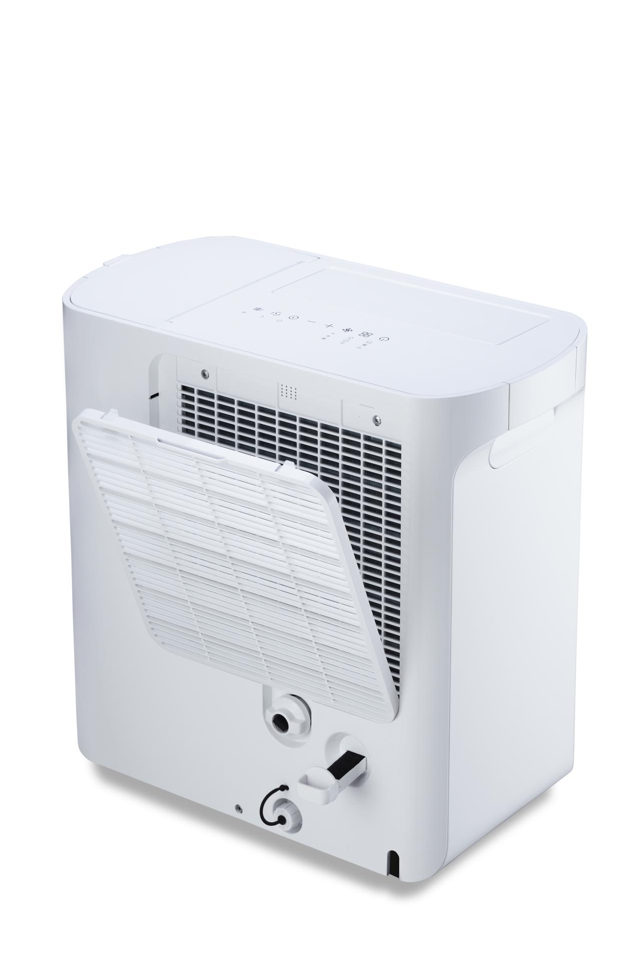 The "New Widetech 16L Ergonomic Smart Dehumidifier WDH31B16E" is designed for optimal user convenience. It features an elevated water tank for easy removal without bending, addressing the challenges faced by elderly individuals and reducing the burden of traditional bottom-mounted tanks. The innovative pump design ensures smooth water flow and straightforward operation. By overcoming the limitations of conventional dehumidifiers, this model is particularly suitable for those with limited mobility, offering a safe and efficient solution for maintaining a comfortable indoor environment.