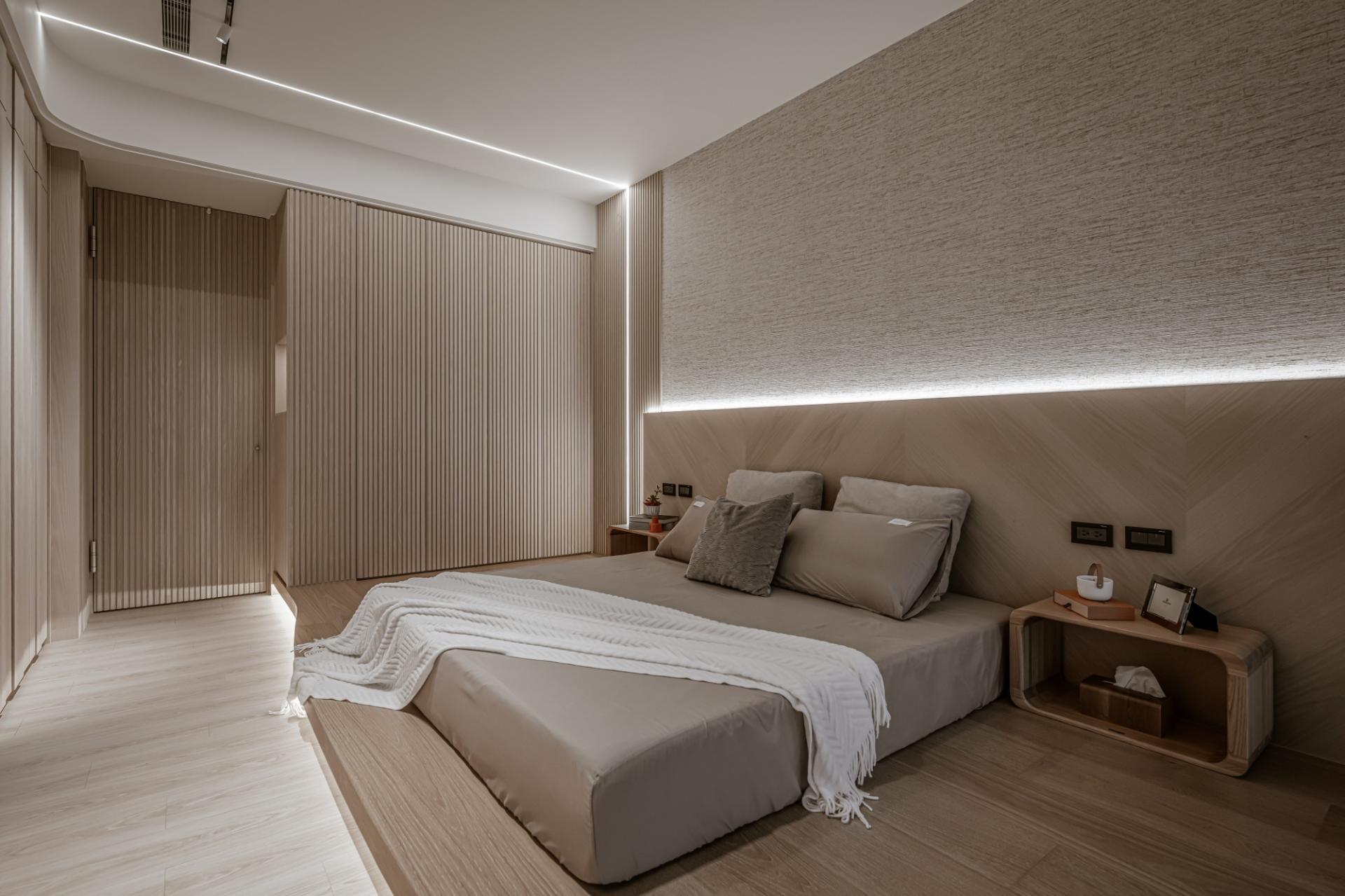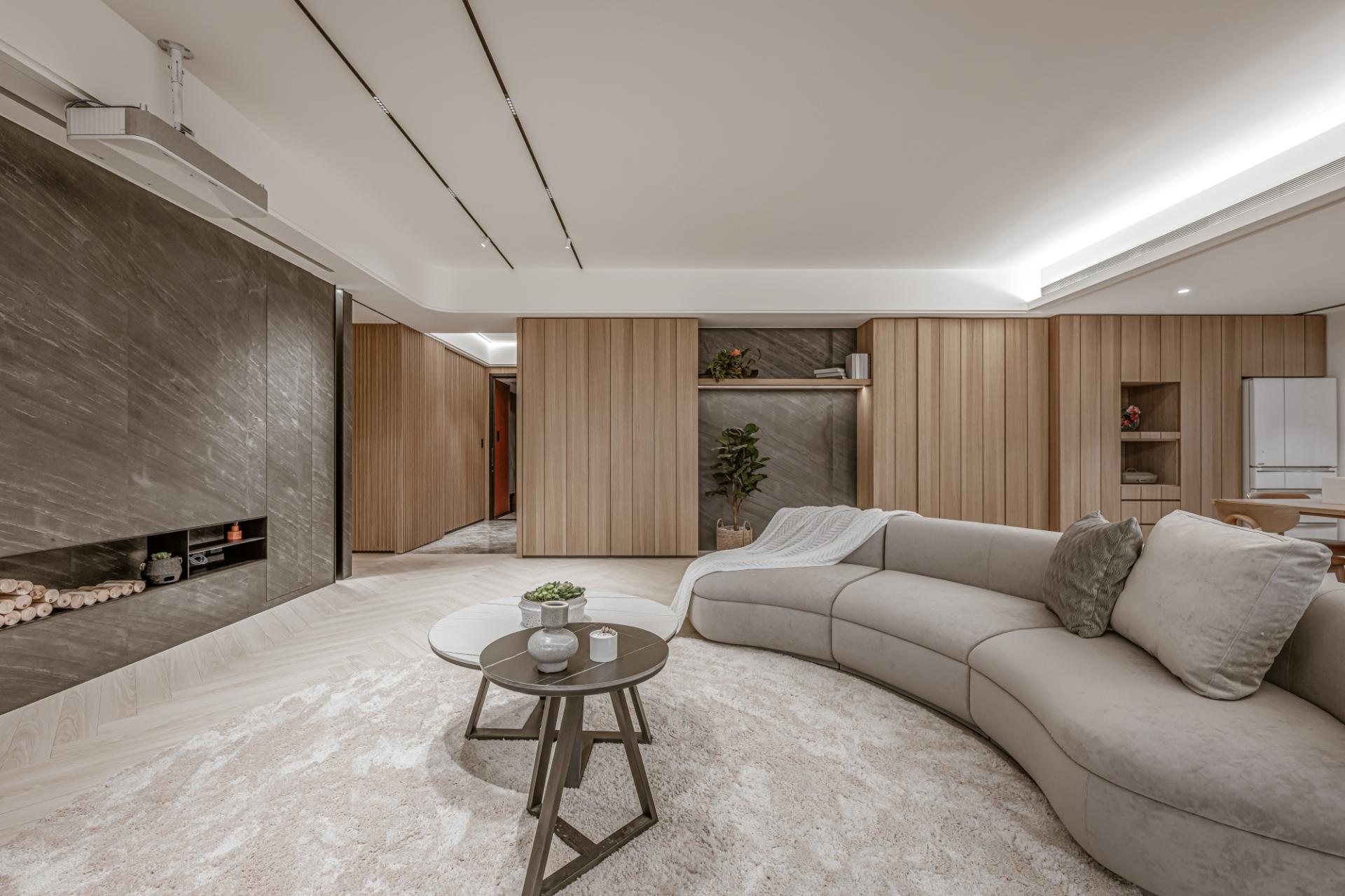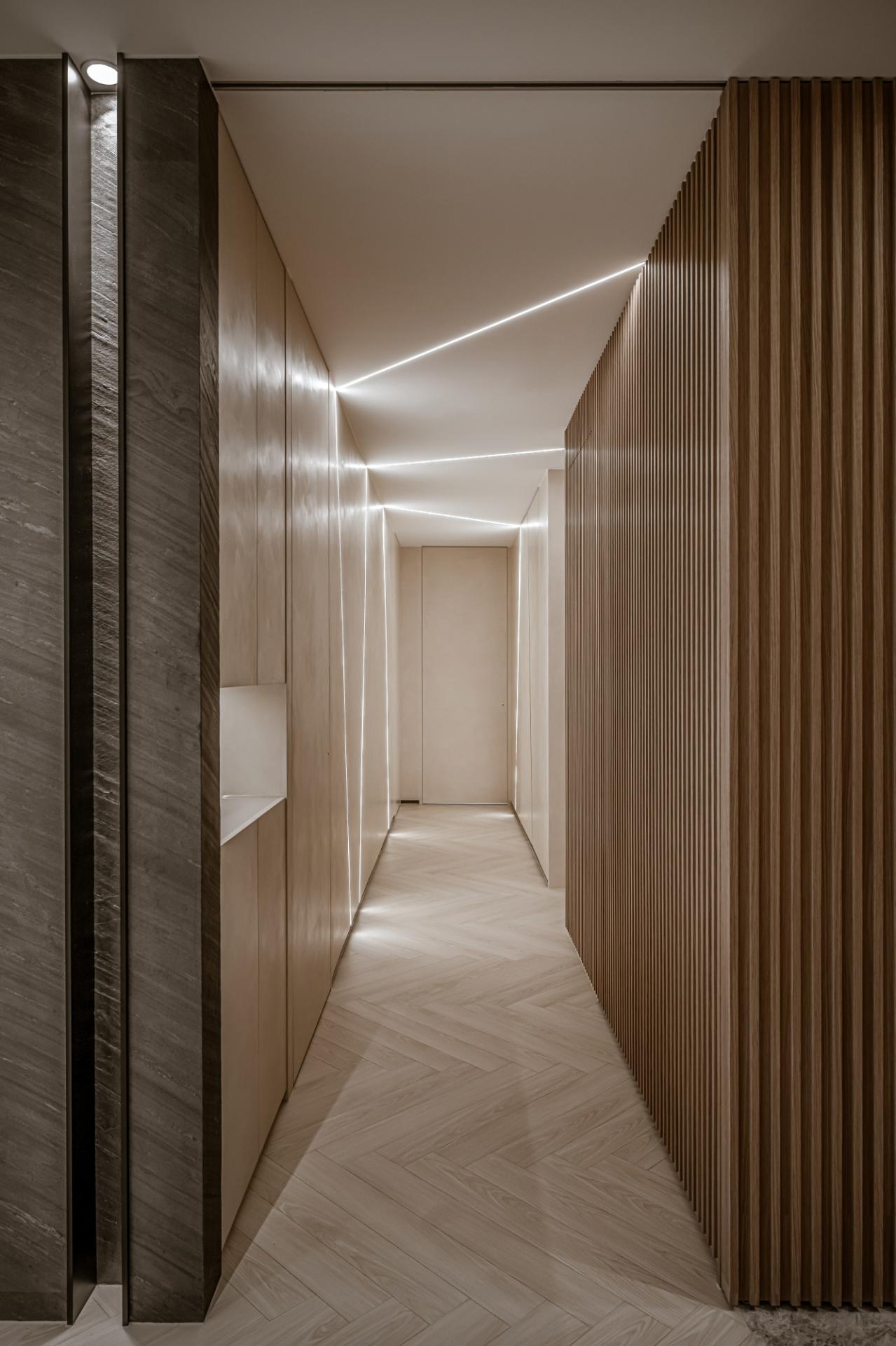 With a restrained use of materials, light strips are employed to guide the flow of movement and outline spatial forms, while also serving as transitions between different zones. The homeowner can adjust the lighting as needed to create a warm, grounded ambiance.