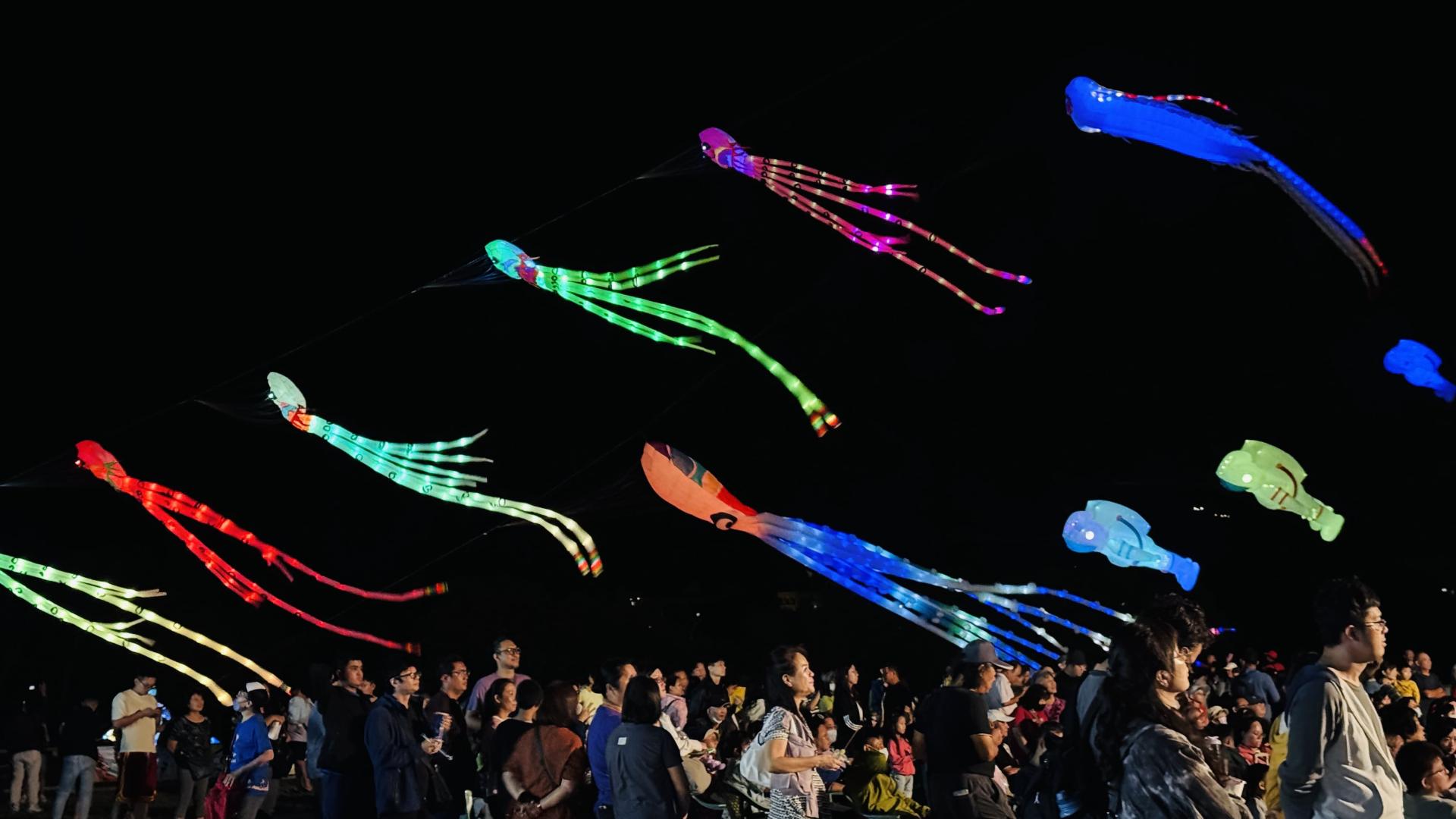 At the 2025 event, the sky was transformed into a dynamic stage for culture and art, animated by a spectacular array of kites dancing against the blue horizon. A national flag kite conveyed dignity and collective pride, while the Chibi Red Rice Cake Kite—A Symbol of Joy, Reunion, and Blessings in Hakka Culture— infused the celebration with warmth and happiness, reinterpreting a cherished Hakka festive delicacy as a playful yet meaningful form of aerial expression. A diverse lineup of Hakka-inspired kites followed in succession: jar-shaped kites evoked the abundance of harvest, lantern and firecracker kites radiated festive energy, and the iconic Taiwanese “Qie Zhi Bag” soft kite transformed everyday cultural imagery into graceful aerial art. Together, these creations turned the sky into a living gallery of cultural expression, where tradition and creativity converged in a shared festive experience.