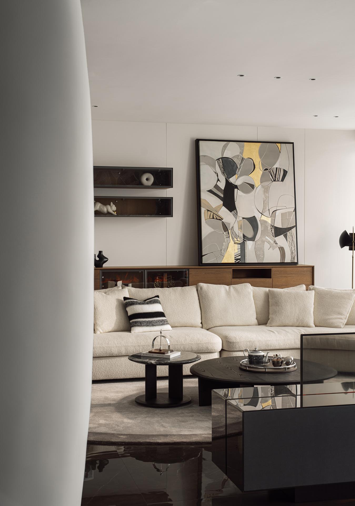 The space leaves a profound impression of openness, tranquility, and refined elegance. Artistic elements like an abstract painting and a sculptural pendant lamp serve as captivating focal points. Ultimately, the most memorable aspect is the unique atmosphere of "breathing within flow and achieving abundance through simplicity"—elevating the home from a mere residence to the very embodiment of an aspirational lifestyle.