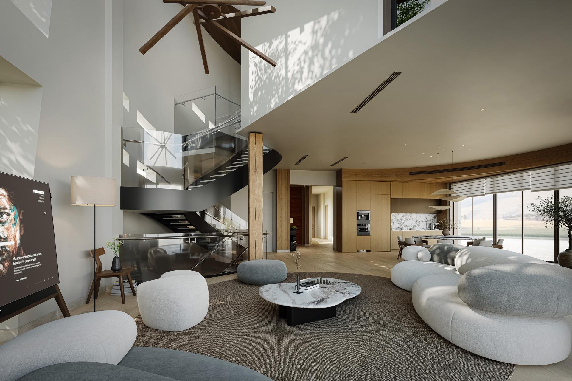 "Phantomweave" project, based on "Symbiosis with Nature," redefines luxury lakeside living. It breaks from traditional villa symmetry, instead using fluid curves inspired by the lake's natural topography. This makes the architecture appear to organically grow from the shore.