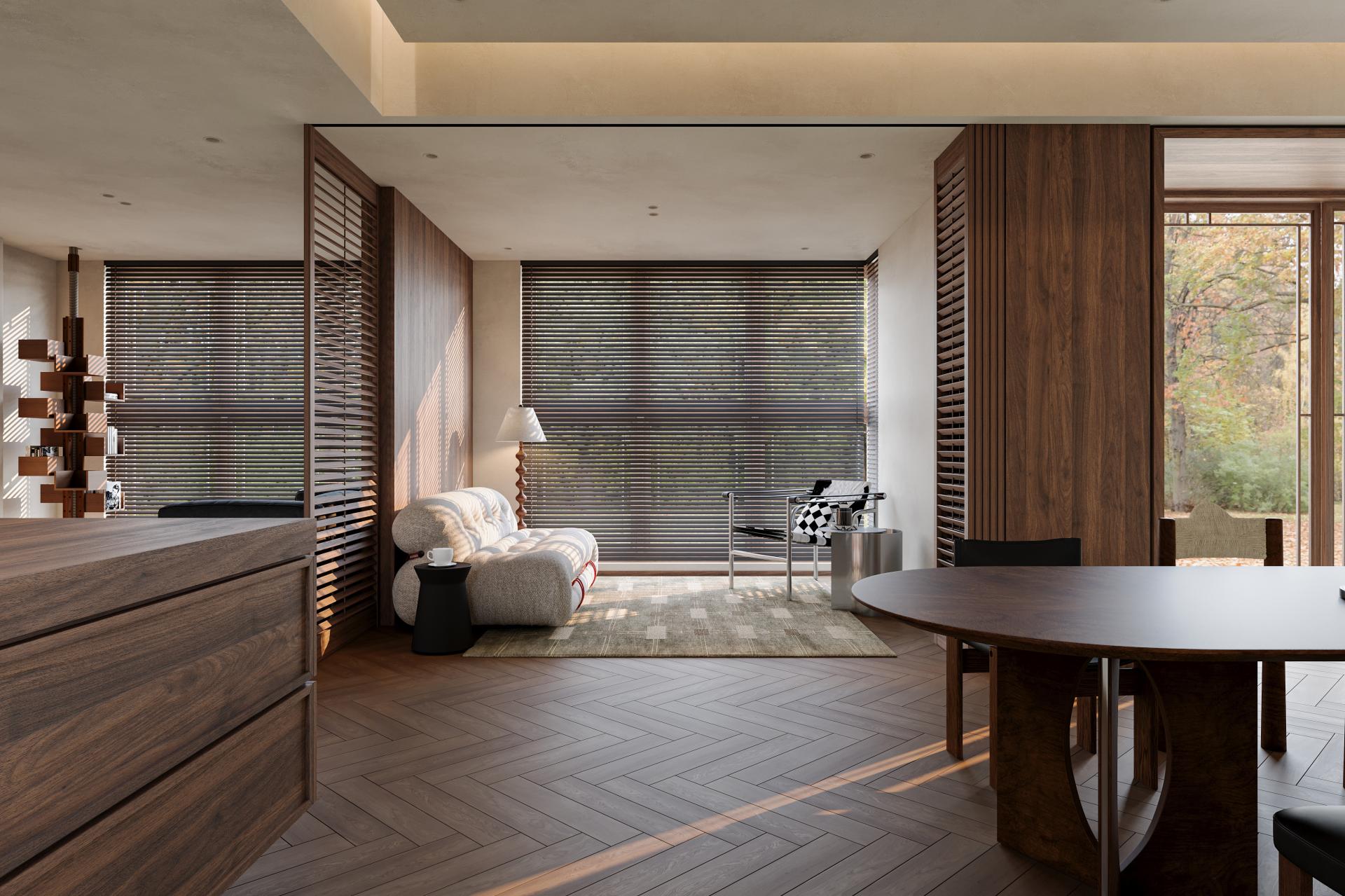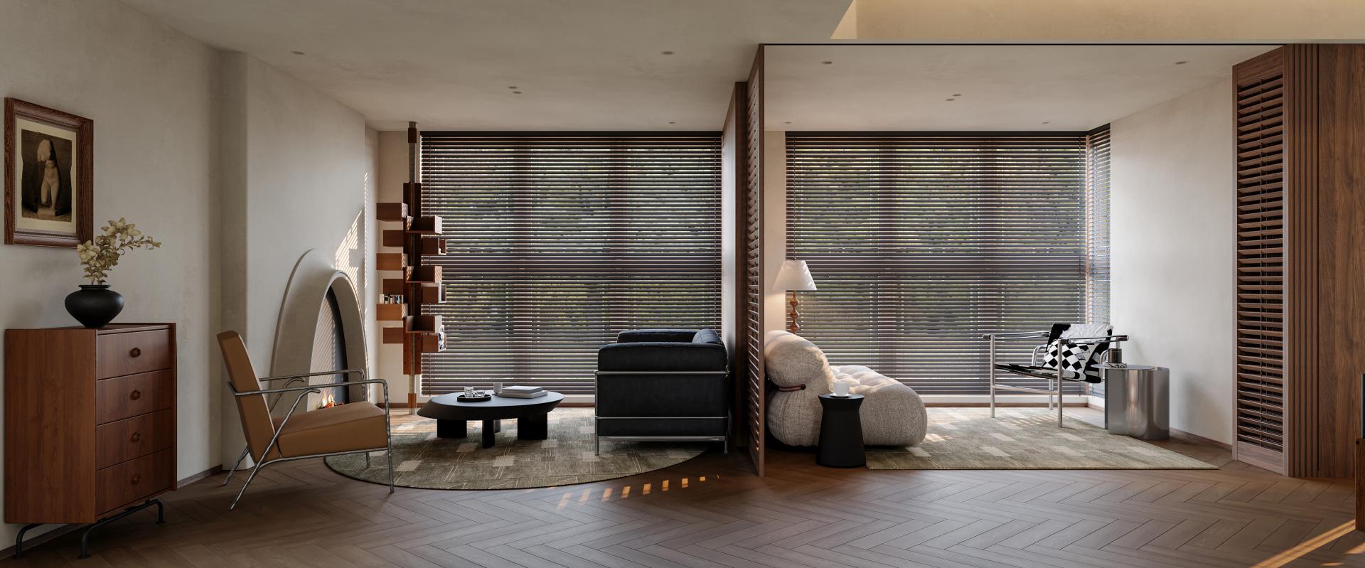 The core highlight of the design lies in shaping light as the soul and narrator of the space. We regard natural light as the most precious material, introducing it into the interior to the greatest extent possible through large-scale windows and floor-to-ceiling glass. Light drifts and flows across the space with the passage of time, casting delicate light spots on the warm oak wood floors and sketching ever-changing window shadows on the plain walls.