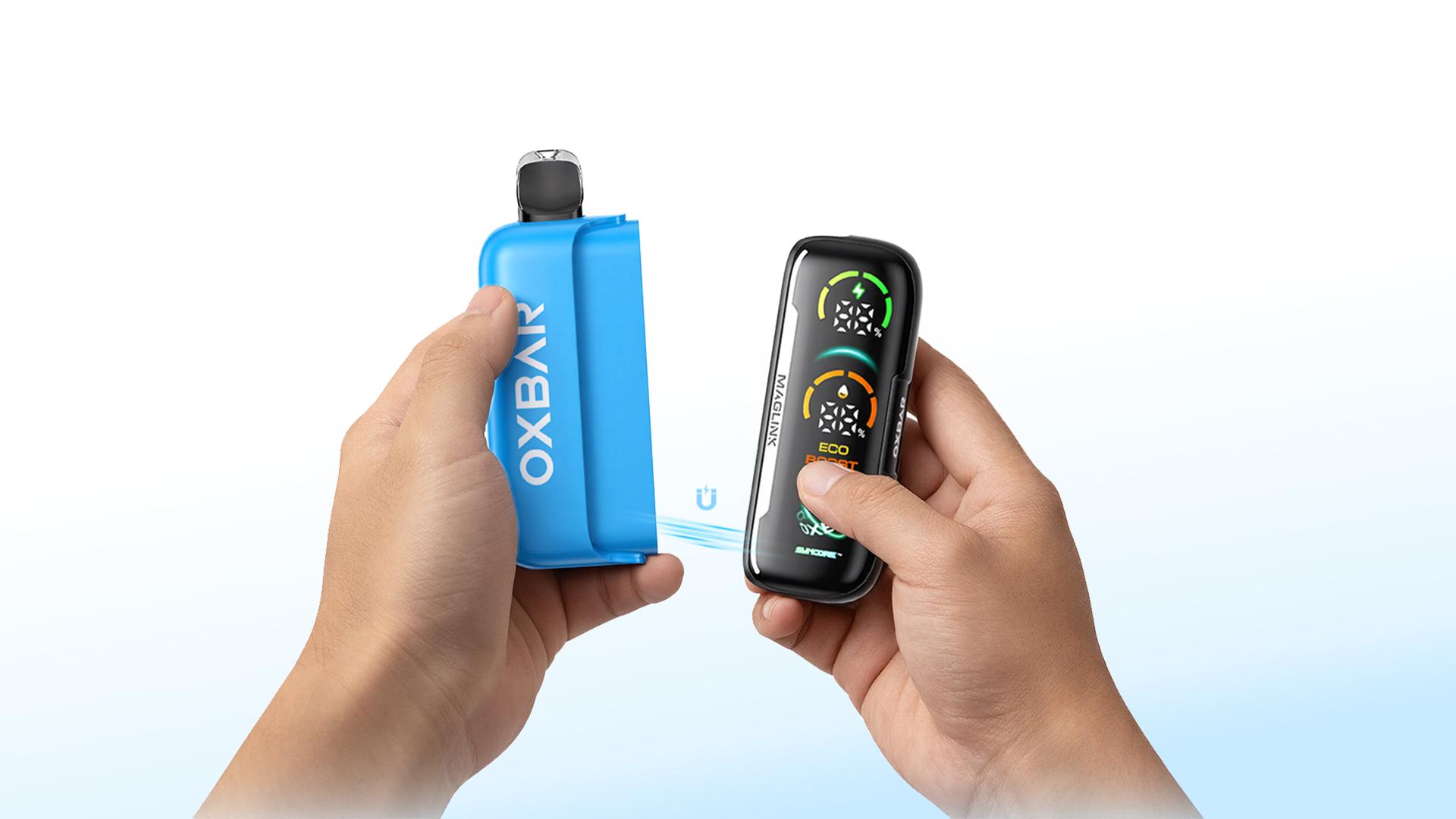 Maglink is a smart vaporization device designed for high-frequency use. Featuring an ultra-slim, continuous curved body and a semi-enveloping curved display, it redefines the grip and interaction experience of large-capacity devices. Powered by Dual Mesh coil technology and a proprietary intelligent power-matching algorithm, it enables millisecond-level switching between NORMAL and BOOST modes, balancing extended battery life with high-efficiency vaporization. Its function-separated architecture, with a reusable main unit and replaceable pods, enhances system reliability while supporting modular upgrades and sustainable use—significantly reducing electronic waste and promoting a more rational, efficient consumption model.