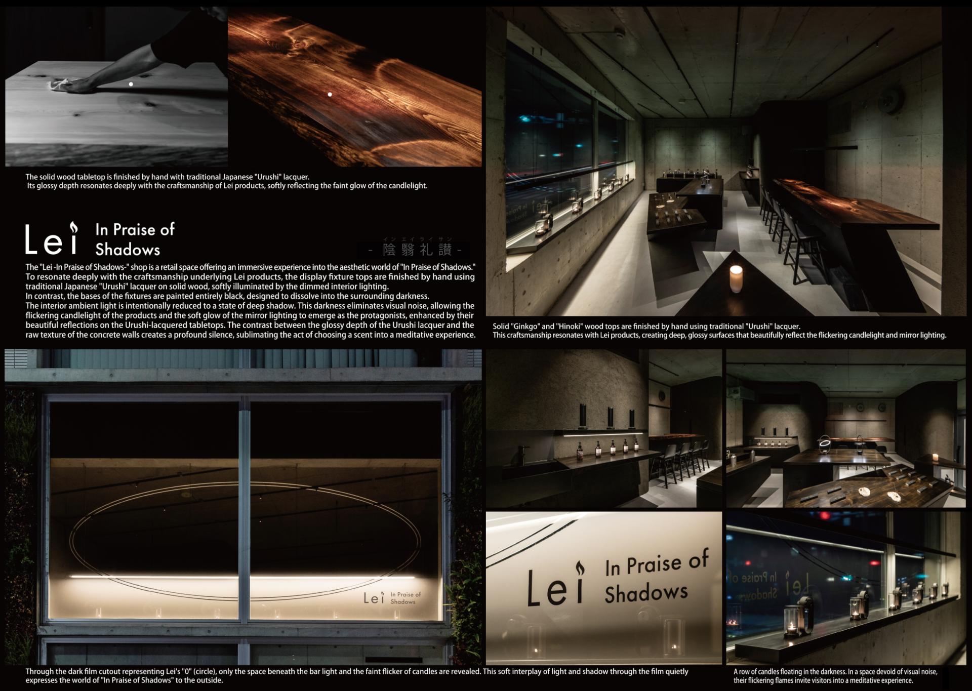 The "Lei -In Praise of Shadows-" shop is a retail space offering an immersive experience into the aesthetic world of "In Praise of Shadows."