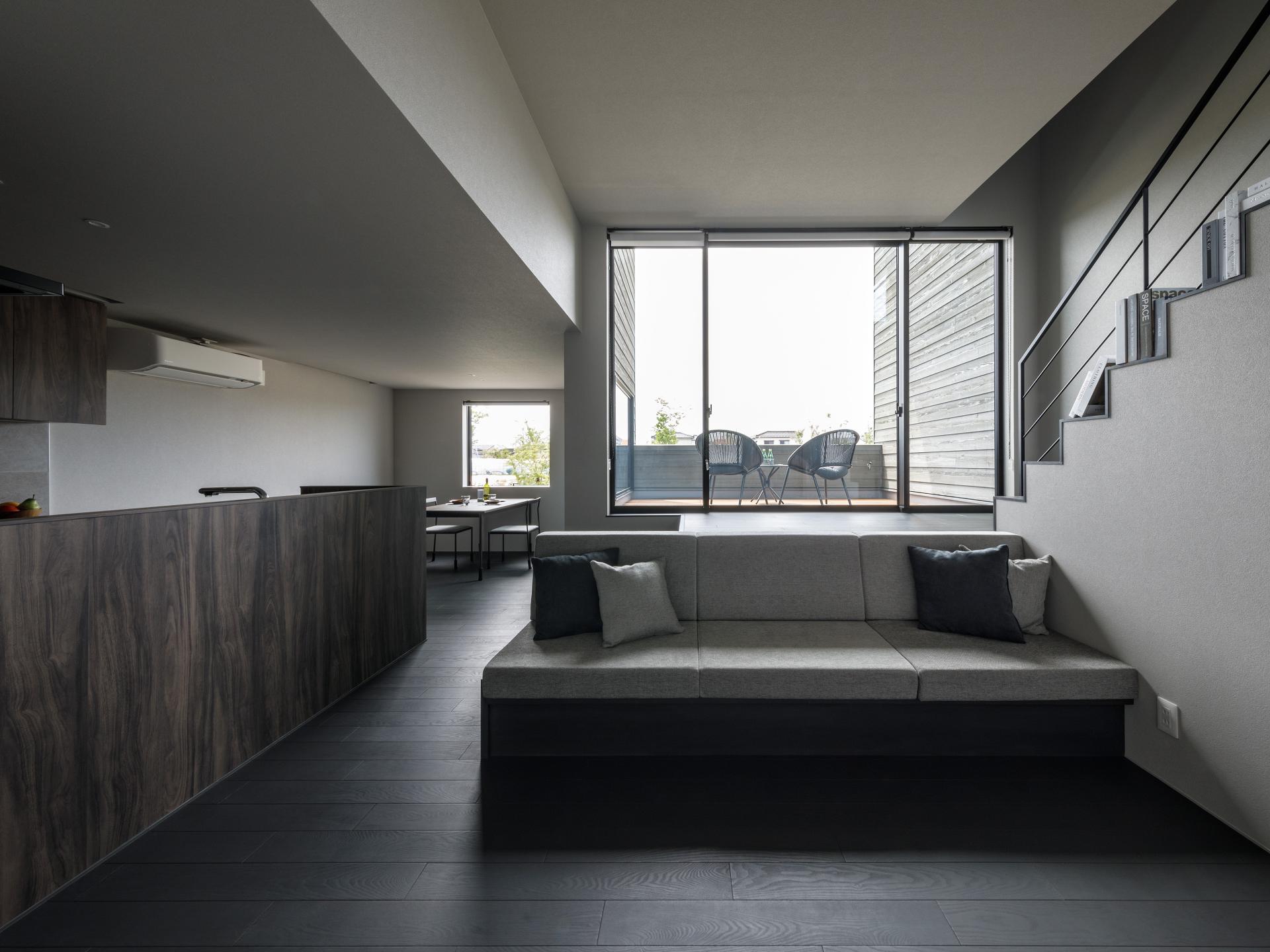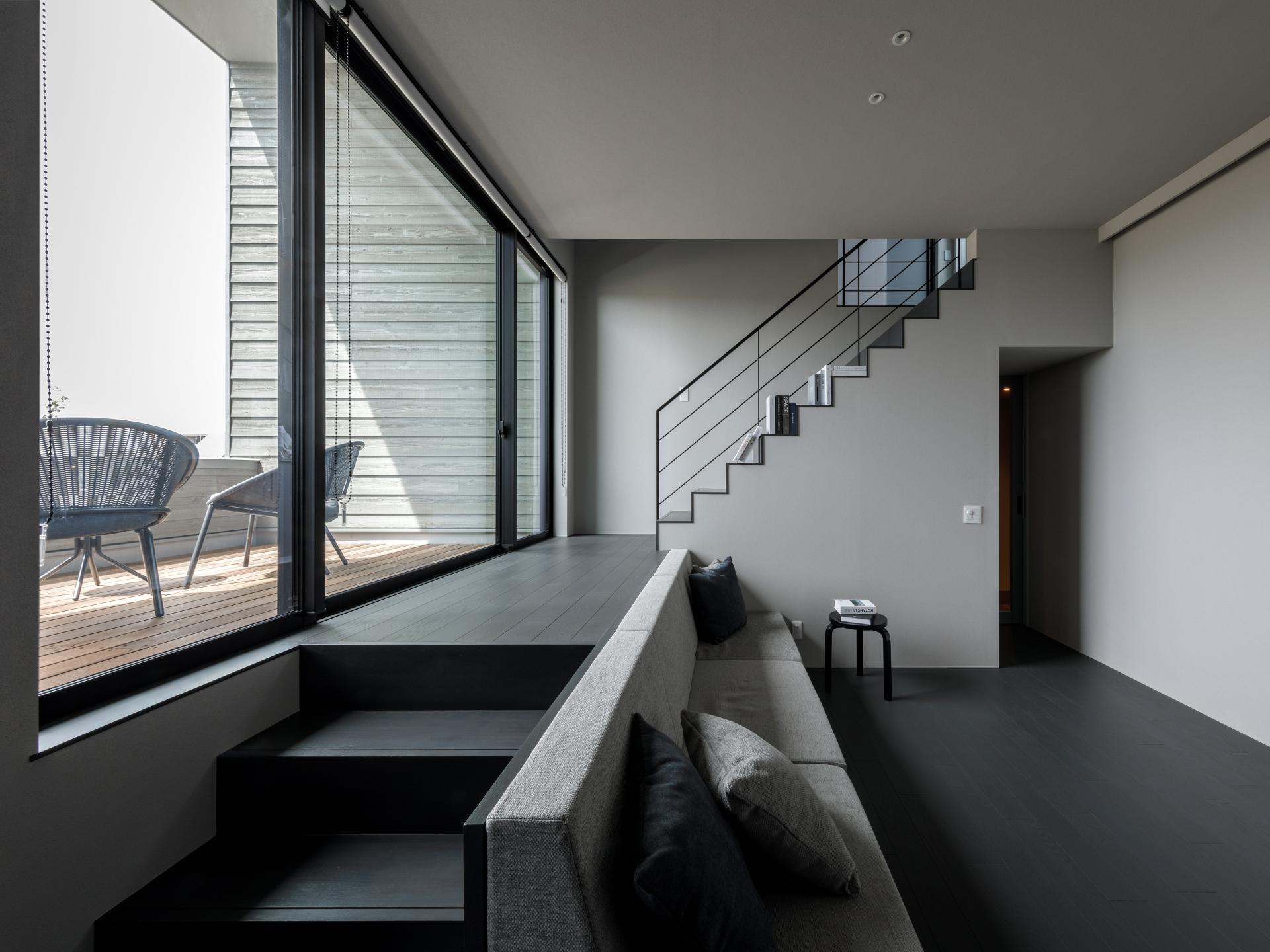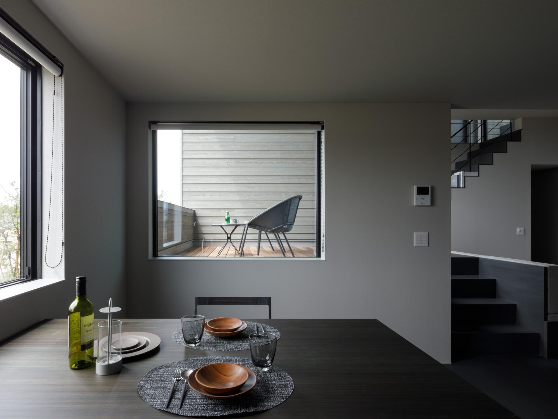 The project site is a new subdivision located on the outskirts of Niigata City. In Japanese residential areas, houses of similar size are built on evenly divided plots of land. In many homes, residents keep their curtains closed to prevent crime and ensure privacy. Because the existing homes use new building materials, they have a monotonous, uniform streetscape. We wanted to change this uniform lifestyle and streetscape. The layout of this house is designed to create a comfortable distance from the street, achieving a design that strikes a contradictory balance between privacy and openness. To achieve this, we created an outdoor terrace in the center of the building. This terrace is 80cm higher than the interior floor and has been named the "skip terrace." The design is just the right height, so the interior is not visible from the road or people passing by. The skip terrace provides privacy from the outside, giving the interior space a sense of security. From inside, all you can see are the trees lining the street and the sky. Residents can feel the presence of nature even when indoors. In new residential areas, new building materials are often used for exterior walls, resulting in uniform, unchanging streetscapes. This house makes use of many domestic materials and was built using traditional wooden construction methods. Older Japanese houses often used wood for their exterior walls. The exterior walls of this house are painted silver-gray to give the appearance of aging. Unlike new building materials, wooden exterior walls develop more patina over time, improving their texture. The large openings created by the skip terrace not only filter sunlight but also add a sense of openness and variety to the streetscape. The design is contemporary, while keeping in mind the look of old Japanese towns. This wooden house blends in with the town and changes the uniform streetscape.