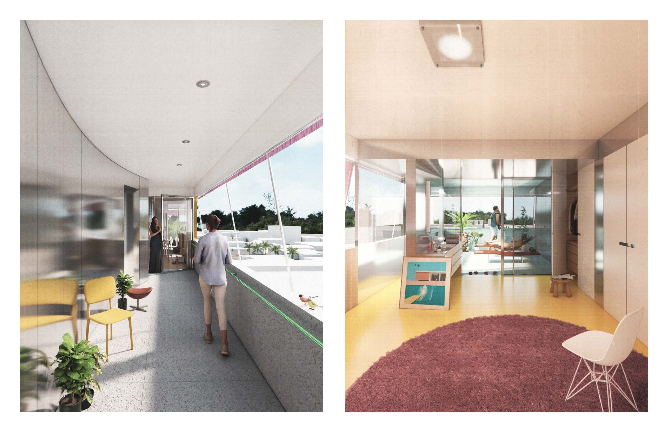 The project offers diverse unit types — from studios to family apartments — all organized around shared balconies and communal outdoor terraces. Each unit is cross-ventilated and flooded with natural light from multiple directions. Adaptability is built in: over time, units can expand, contract, or be reconfigured without disrupting the core infrastructure. Designed for replication across various small-lot sites, this prototype uses modular logic and material efficiency to reduce costs while maintaining high-quality spatial standards. The building envelope integrates passive shading, natural ventilation, ensuring long-term energy performance and climate resilience. Rather than imposing a fixed way of life, it supports life as it changes.