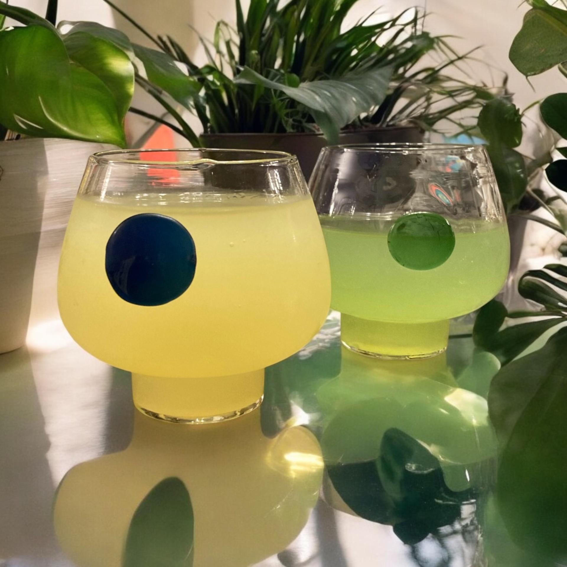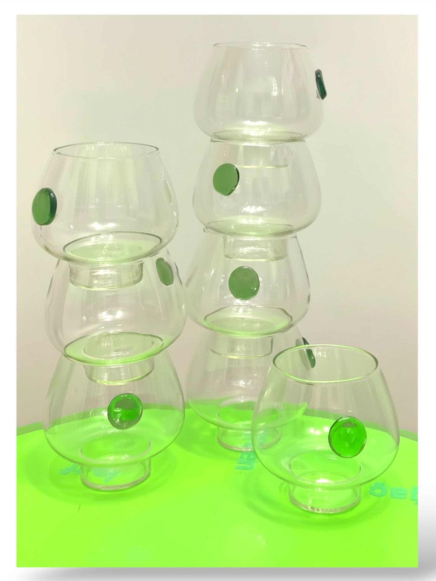 I named this design as "Nature Glass" because it was important to me that the liquids placed inside would also be natural, and that it would provide a special presentation with minimalist lines. The glass's volume, dimension, ease of grip, and the dot symbolizing nature were all elements that completed the design. I used borosilicate glass, a natural and healthy material in its transparent form, and I also used the same material for the green/blue dot, which I envisioned as a signature for the company I designed for, but in a shade of green that I felt represented nature. Nature glass is resistant to heat.They are designed to be stacked on top of each other, saving space when stacked in multiples.