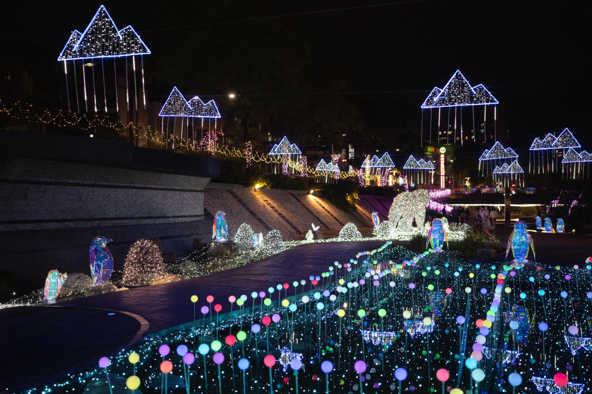 Under the theme “Starlit Zhonggang · Dreamlike Galaxy,” the exhibition connects four major bridges—Xinfu Bridge, Xingfu Bridge, Changsheng Bridge, and Changlong Bridge—transforming the entire waterfront into a continuous immersive light environment.