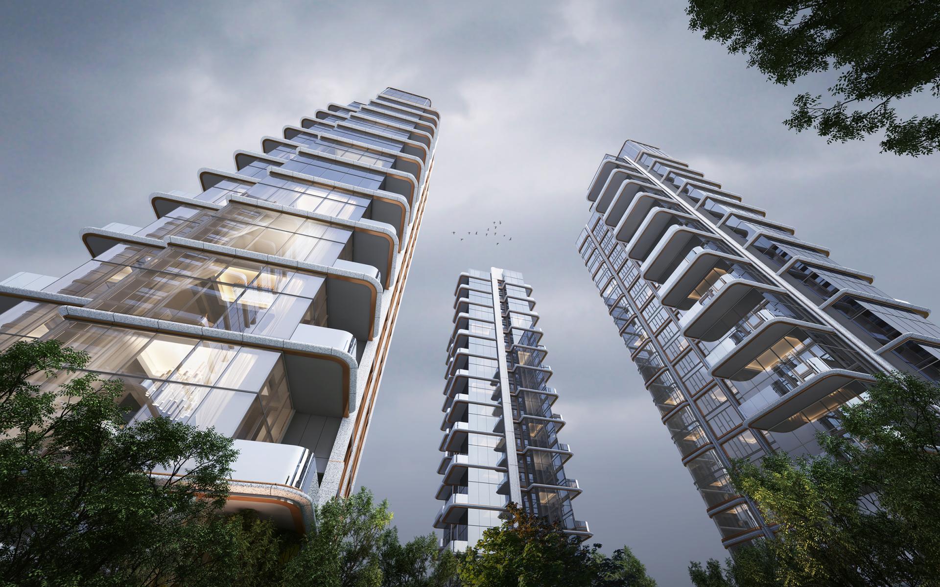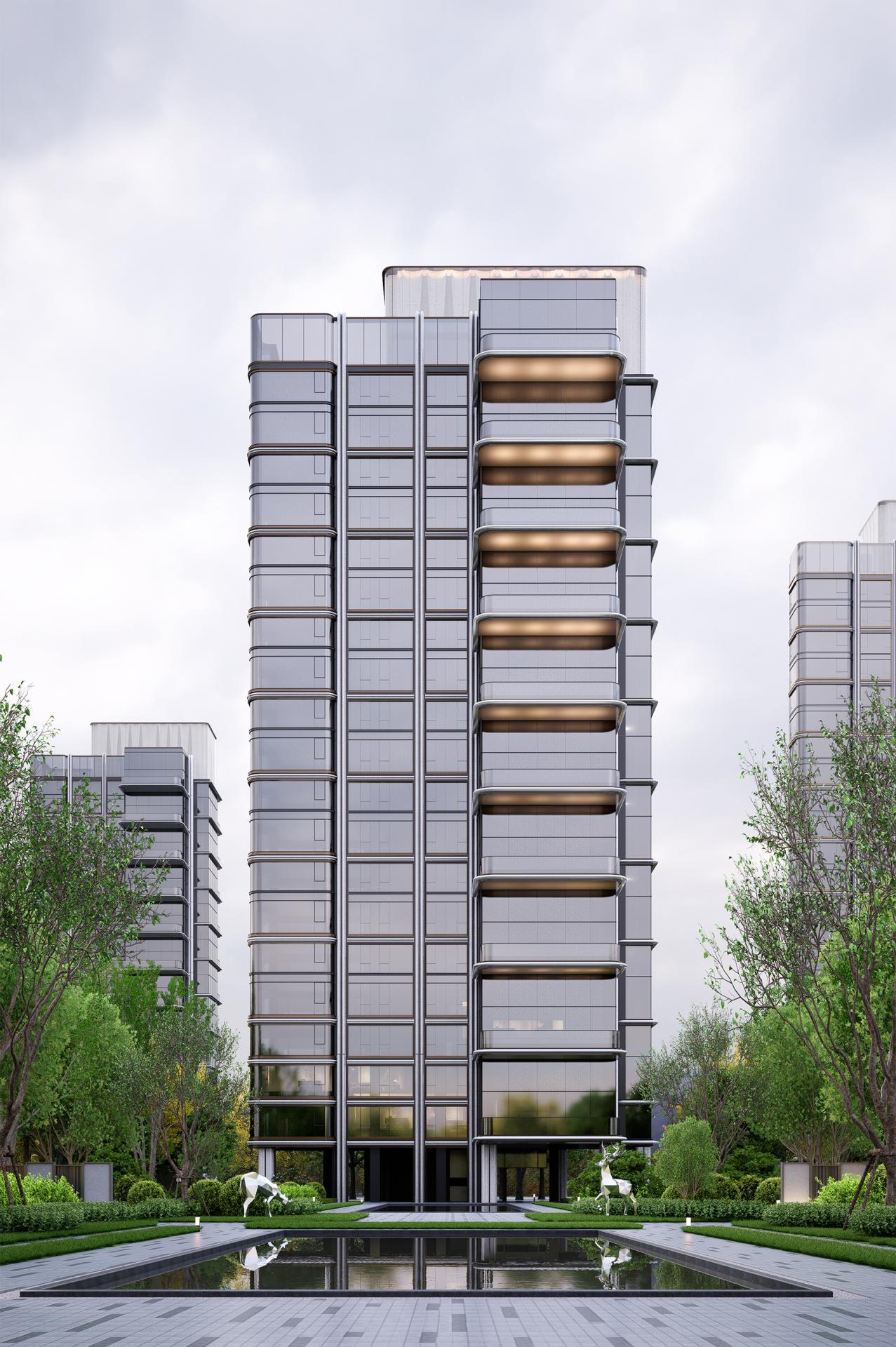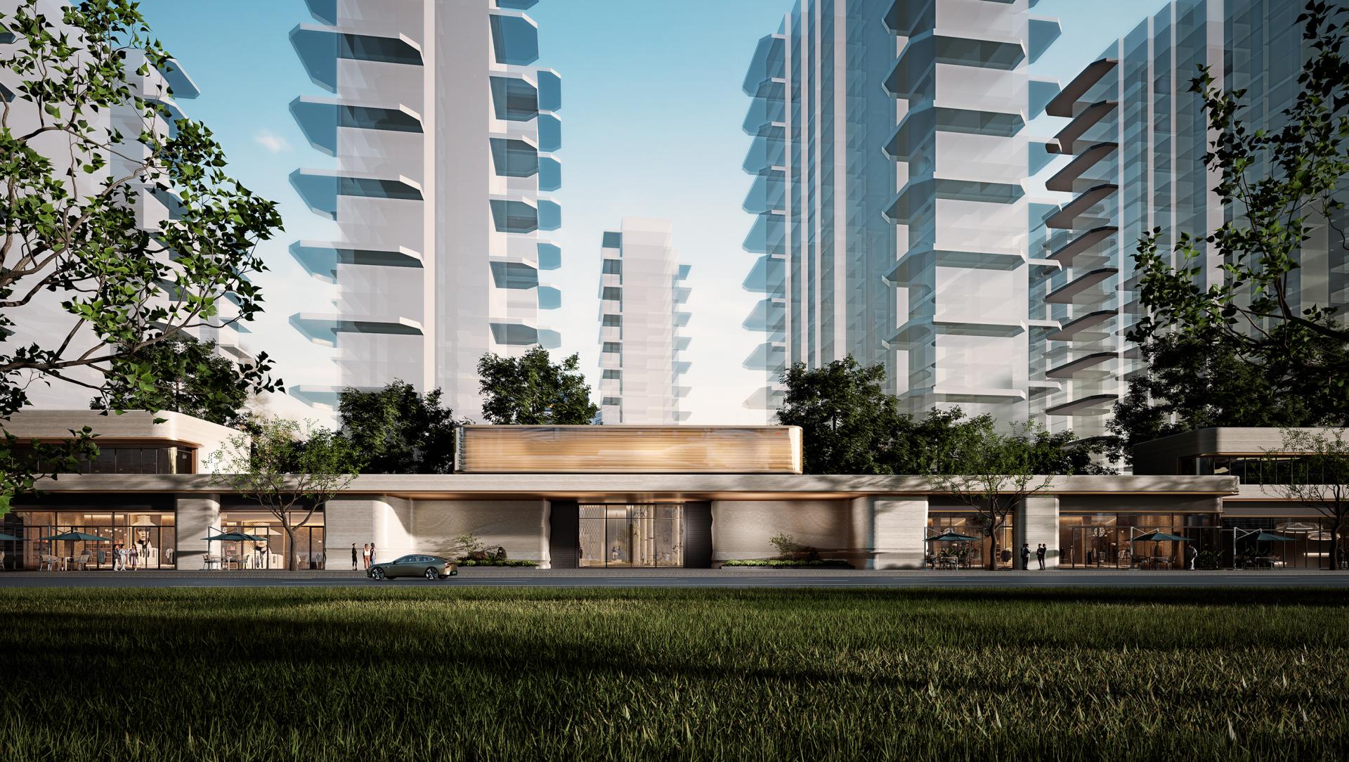 At the master planning level, the project implements an all-high-rise layout strategy with a plot ratio of 2.0. By rotating the towers by 7.5° and adopting a "staggered arrangement", it maximizes the utilization efficiency of river view resources, enabling 56.3% of residential units to face the Ba River directly and significantly enhancing the fair sharing of natural resources. The entire site is elevated by 5.4 meters to form a "double ground floor" structural system, which not only strengthens flood resilience, but also frees up ground space for three-dimensional gardens and a multi-functional club system, building a multi-level and composite green public interface.