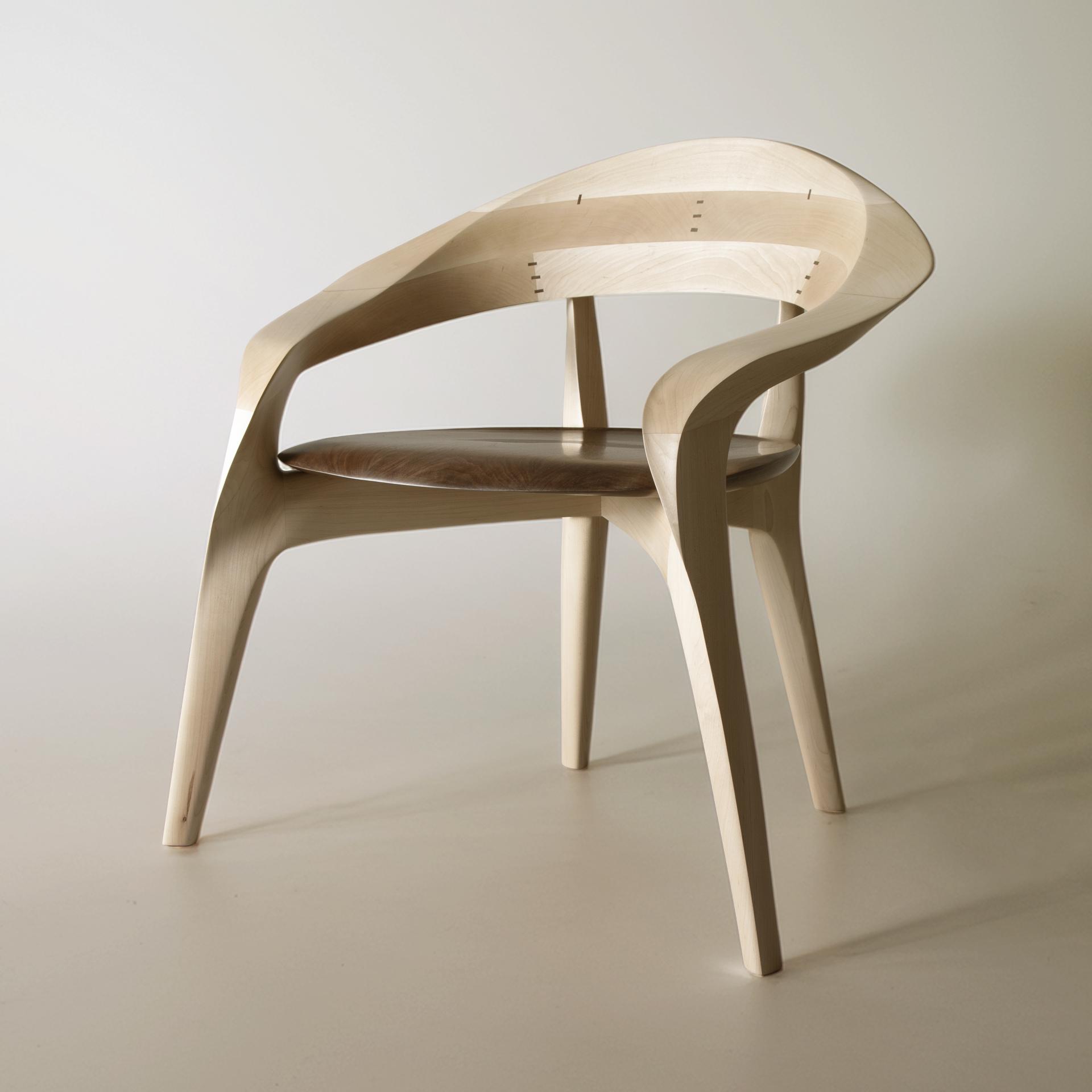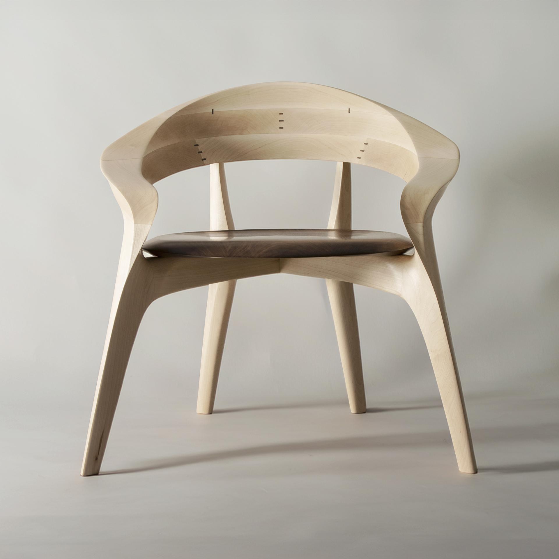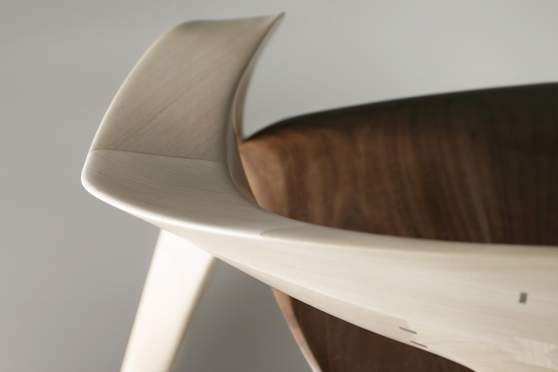 The form was realized by carving directly from solid wood using traditional Japanese hand tools. Rather than imposing a predetermined geometry, the final shape emerged through continuous interaction with the material. Balance, weight distribution, and surface transitions were adjusted through repeated physical testing, allowing the chair to achieve stability and comfort while maintaining a strong visual identity. The resulting geometry could not be achieved through industrial or automated processes, as its complexity relies on tactile judgment and material response.