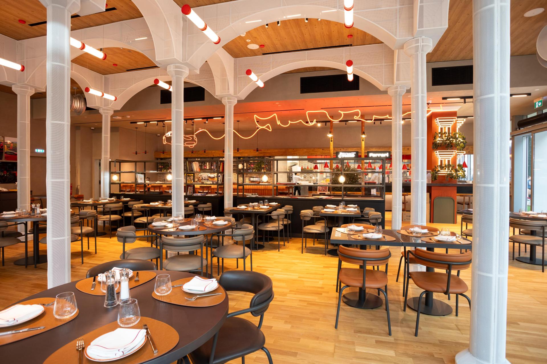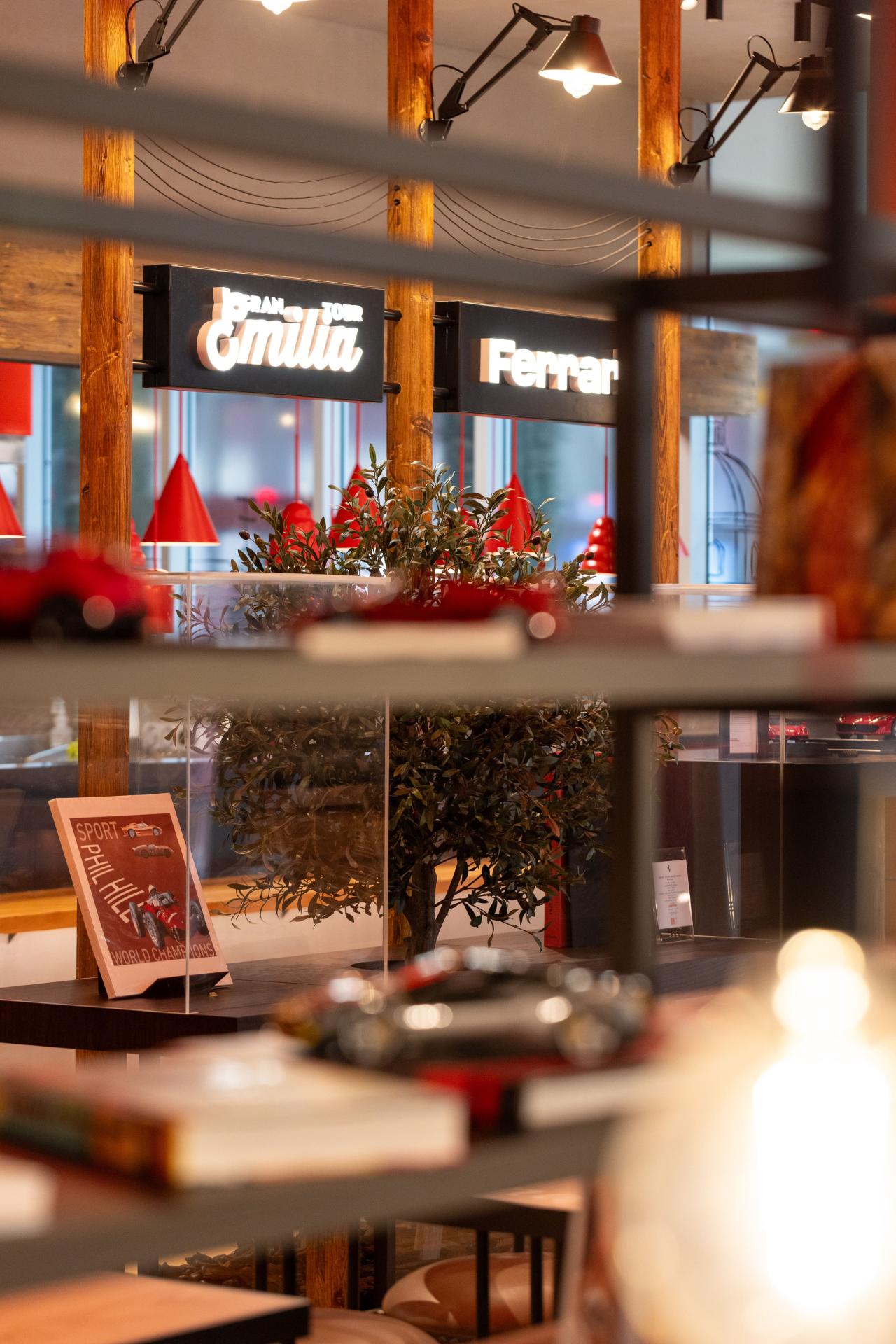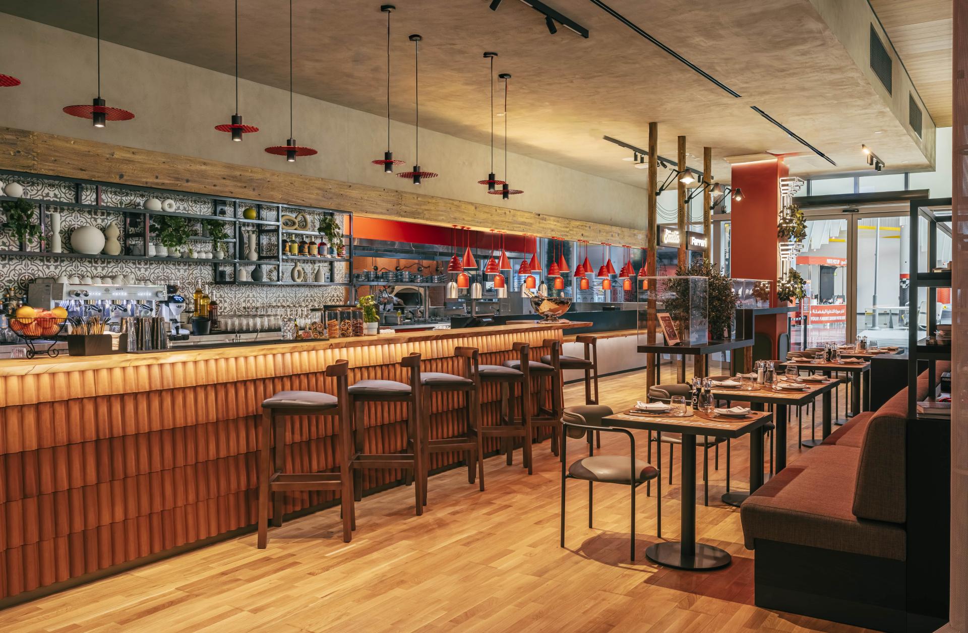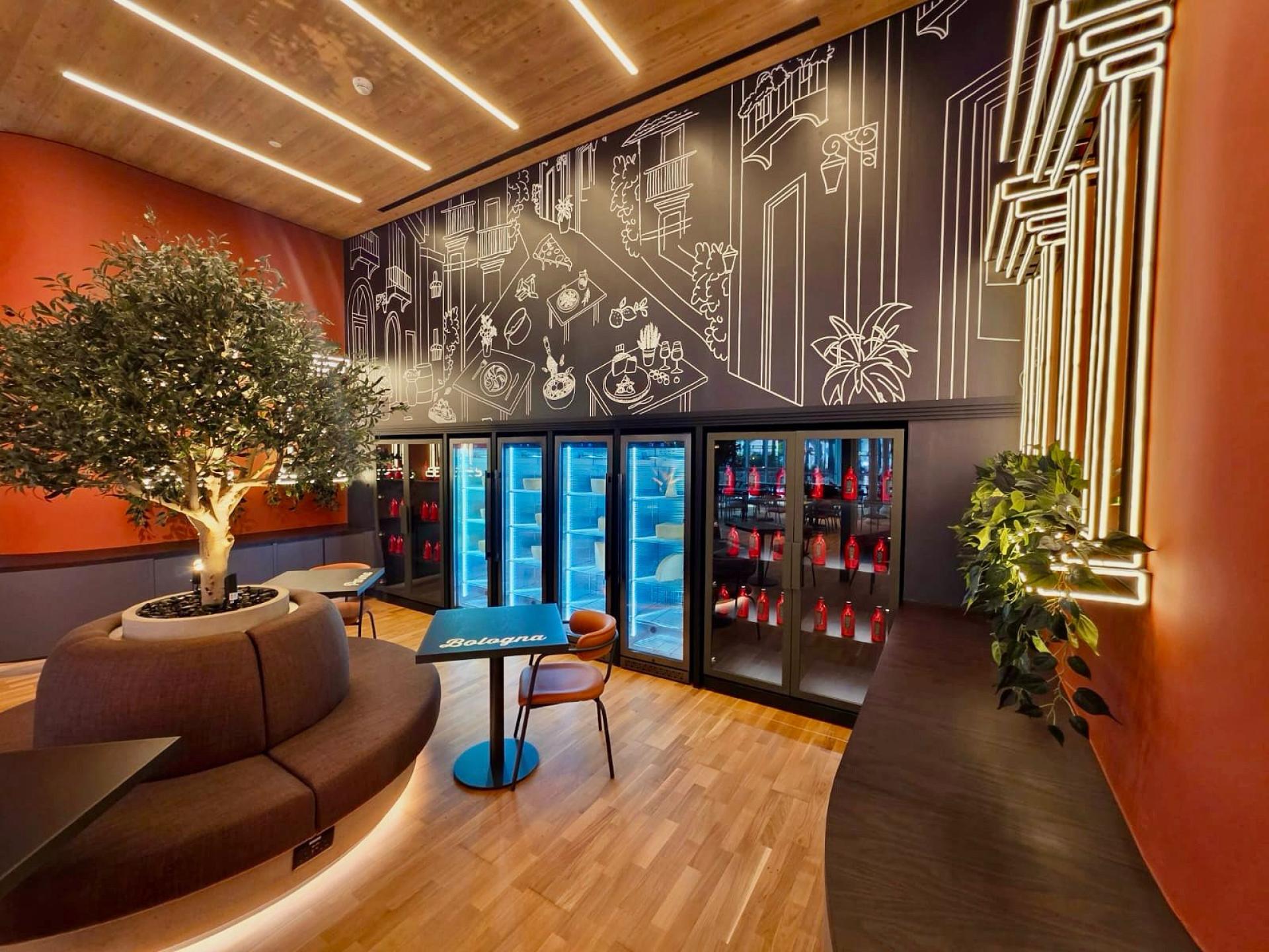 Grand Tour Emilia is an immersive restaurant concept located in Ferrari World Abu Dhabi, designed to celebrate the cultural richness, culinary heritage, and architectural beauty of Italy’s Emilia region. This project represents a harmonious fusion between traditional Italian warmth and the modern, dynamic identity of Ferrari, creating a dining experience that unfolds like a curated journey through the heart of Emilia. The design invites guests to “travel” across iconic regional destinations such as Parma, Bologna, and the wider Emilia area. Each spatial zone subtly reflects the character of these towns through materiality, colors, and architectural references. Warm terracotta tones, authentic arches, vintage-inspired accessories, and tactile finishes pay homage to classic Italian streetscapes. At the same time, the restaurant incorporates modern interpretations—such as neon-framed windows and contemporary furniture—to create a fresh, stylish environment that feels both nostalgic and current. A key feature of Grand Tour Emilia is the integration of Ferrari-inspired elements in a refined, tasteful way. Decorative lighting above the bar is crafted using design motifs derived from Ferrari components, while neon lights and wall fixtures echo the energy and movement of the iconic car brand. Certain Ferrari-related elements are creatively reimagined as lighting installations, providing guests with unique visual moments that connect the dining experience to the spirit of Ferrari. These details also enhance the restaurant’s appeal as an interactive, Instagrammable destination, engaging visitors of all ages. The spatial composition includes a striking bar designed as a modern reinterpretation of rooftop structures commonly found in Emilia, complete with terracotta hues and architectural accents from historic Italian towns. Across the dining area, curated design details, soft ambient lighting, and region-specific décor immerse guests in the ambience of authentic Italian living. Beyond its visual narrative, Grand Tour Emilia celebrates Italy’s gastronomic richness. Each region’s renowned specialties and culinary identity are reflected not only in the menu but also through the storytelling embedded in the space. Guests can feel, see, and taste the journey through Emilia—experiencing a blend of tradition, innovation, and the joyful spirit of Italian culture. Grand Tour Emilia stands as a dynamic and memorable concept where regional Italian heritage