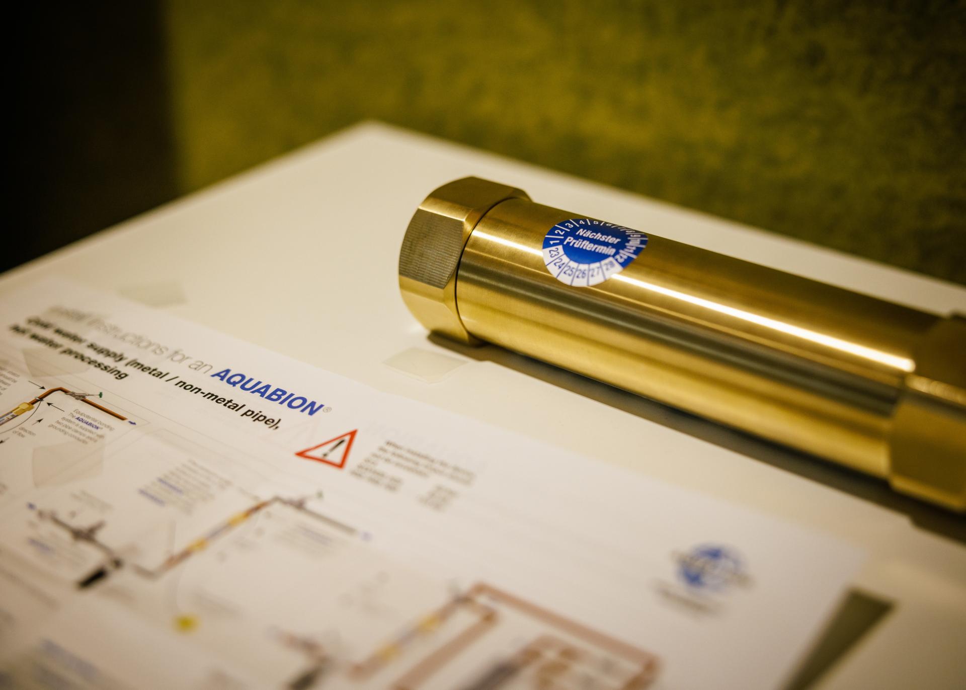 Beyond its technical performance, AQUABION® embodies industrial design clarity. Its compact, cylindrical form integrates seamlessly into existing piping systems without requiring additional space, energy supply, or complex installation. The design is intentionally minimal: no digital interface, no maintenance modules, no replaceable cartridges. This reduction to essentials reflects a philosophy of engineering purity — where function defines form. High-quality materials, precision manufacturing, and durable construction ensure long service life while visually expressing reliability and technical refinement.