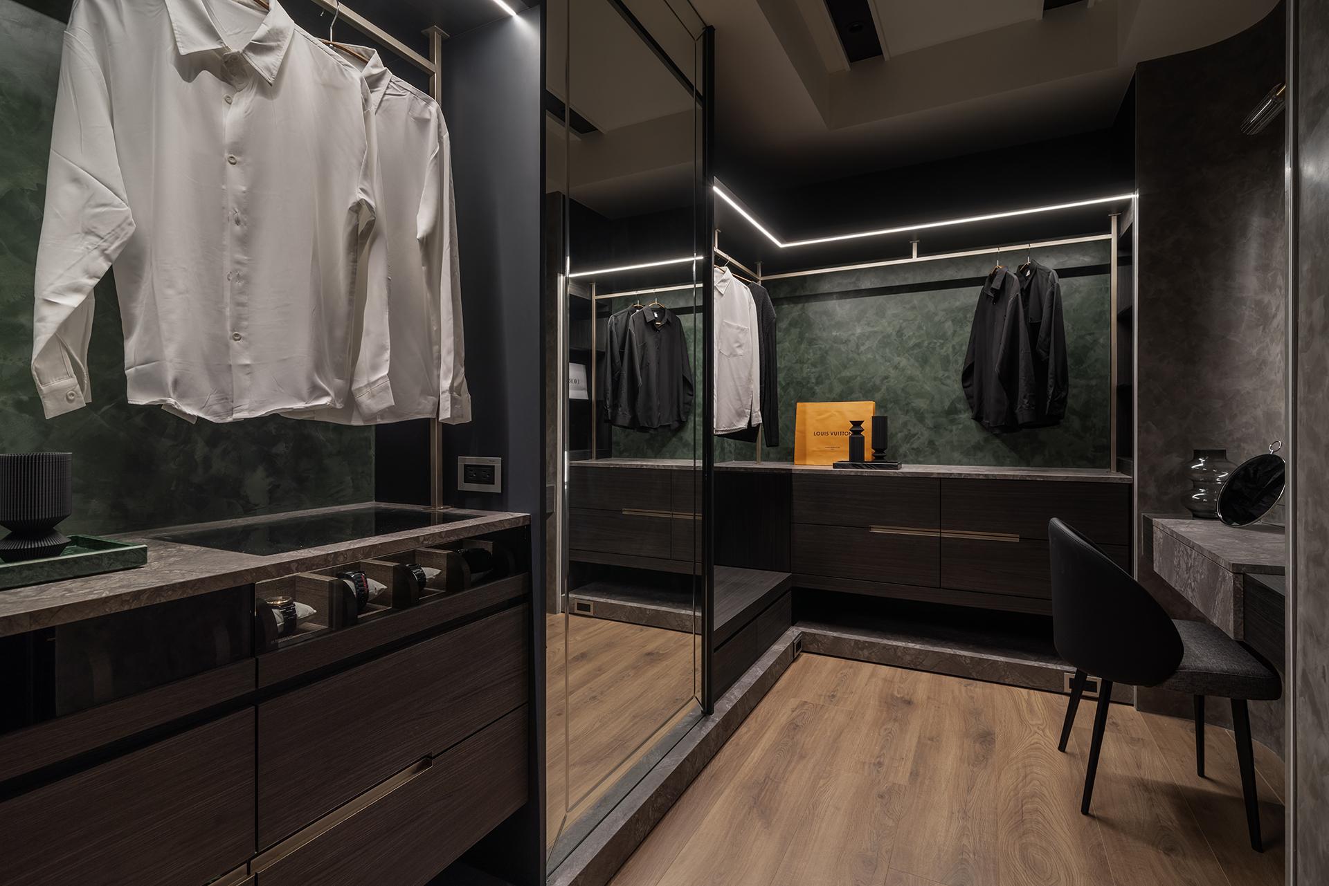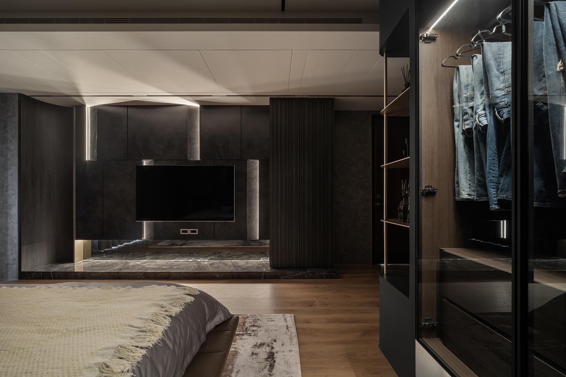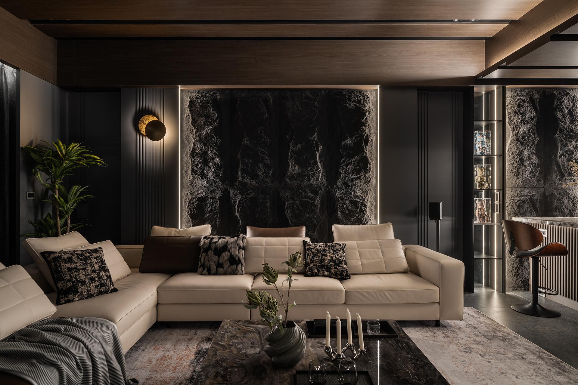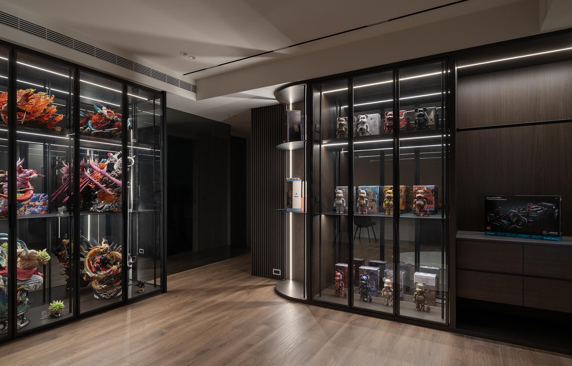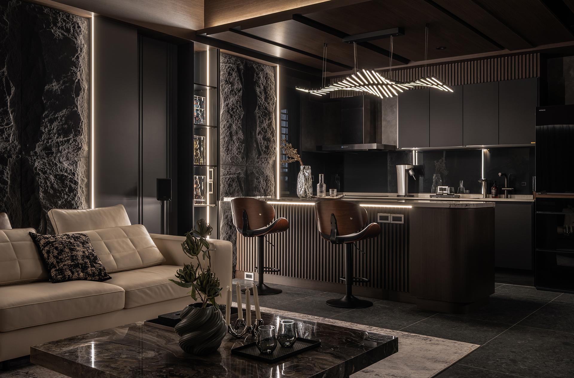 This residence embraces a monochromatic palette of black, grey, and white, shaping an atmosphere of refined coolness and metropolitan sophistication. The design responds to the homeowner’s preference for lounge-inspired ambience, deep tones, wine appreciation, and model collection, creating a personalized environment where solitude becomes a form of enjoyment and everyday rituals are elevated into sensory experiences.